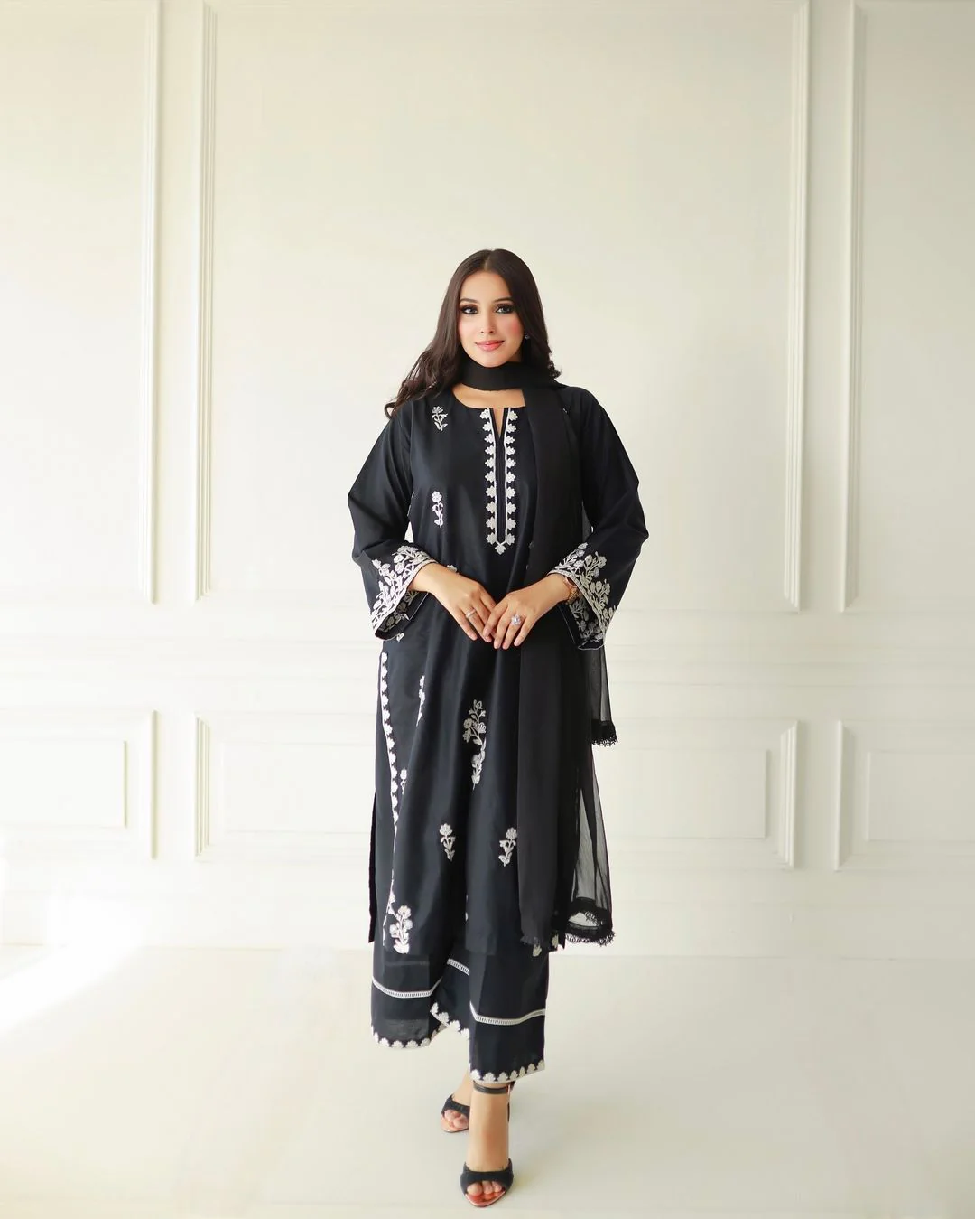 ELMORA 2-PIECEEmbroidered 2-Piece Premium Embroidery On shirt and trouserFABRIC: Chambray LinenSizes S,M,L & XLPRICE: 3780/- With Free Delivery